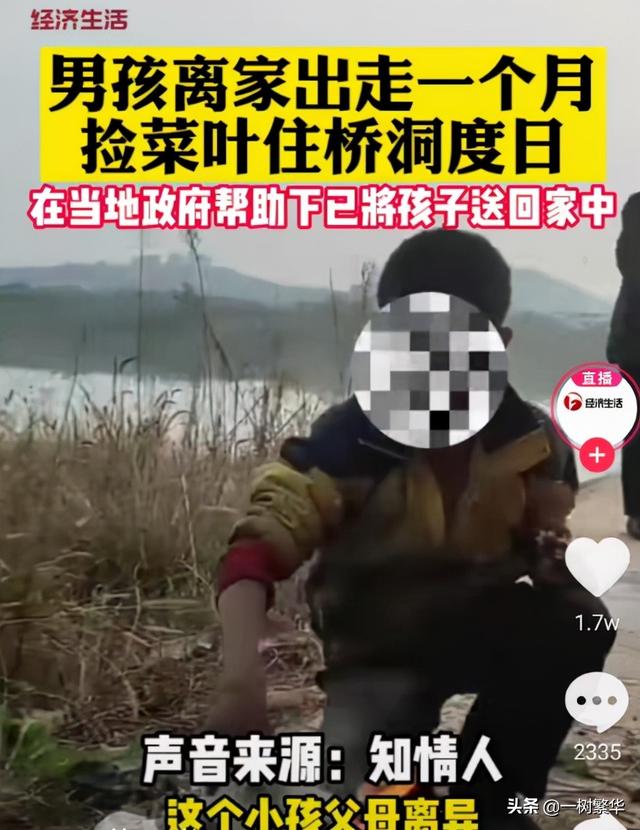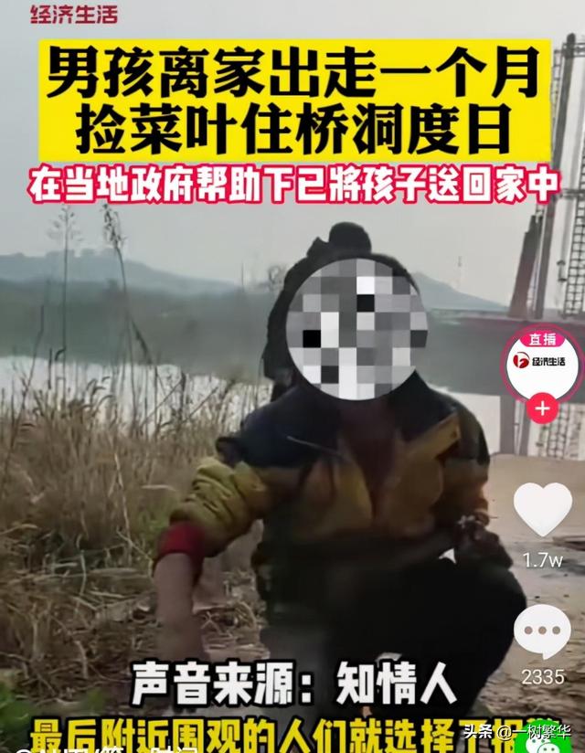 近日,有网友在湖南省衡阳市的荒郊野外看到了一个小男孩。据看到这个小男孩的网友称,这个小男孩晚上睡在桥洞底下,白天就四处去捡一些烂菜叶,然后用不知在哪里捡到的破容器架火煮菜叶吃。