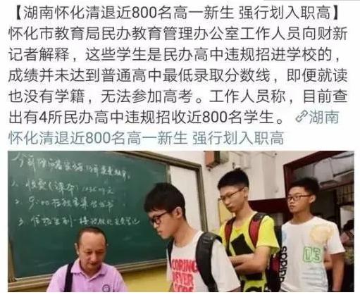 800名违规高一新生被遣送回职高,分数不达标