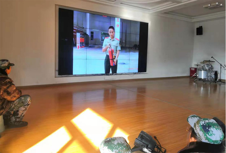 学生们正在看视频讲解如何正确地使用灭火器。正苗启德特训学校认为,消防安全教育应该理论与实践相结合,这样才能让孩子们对于消防知识更加记忆深刻,也能在危险来临的时候找到正确的方法自救。